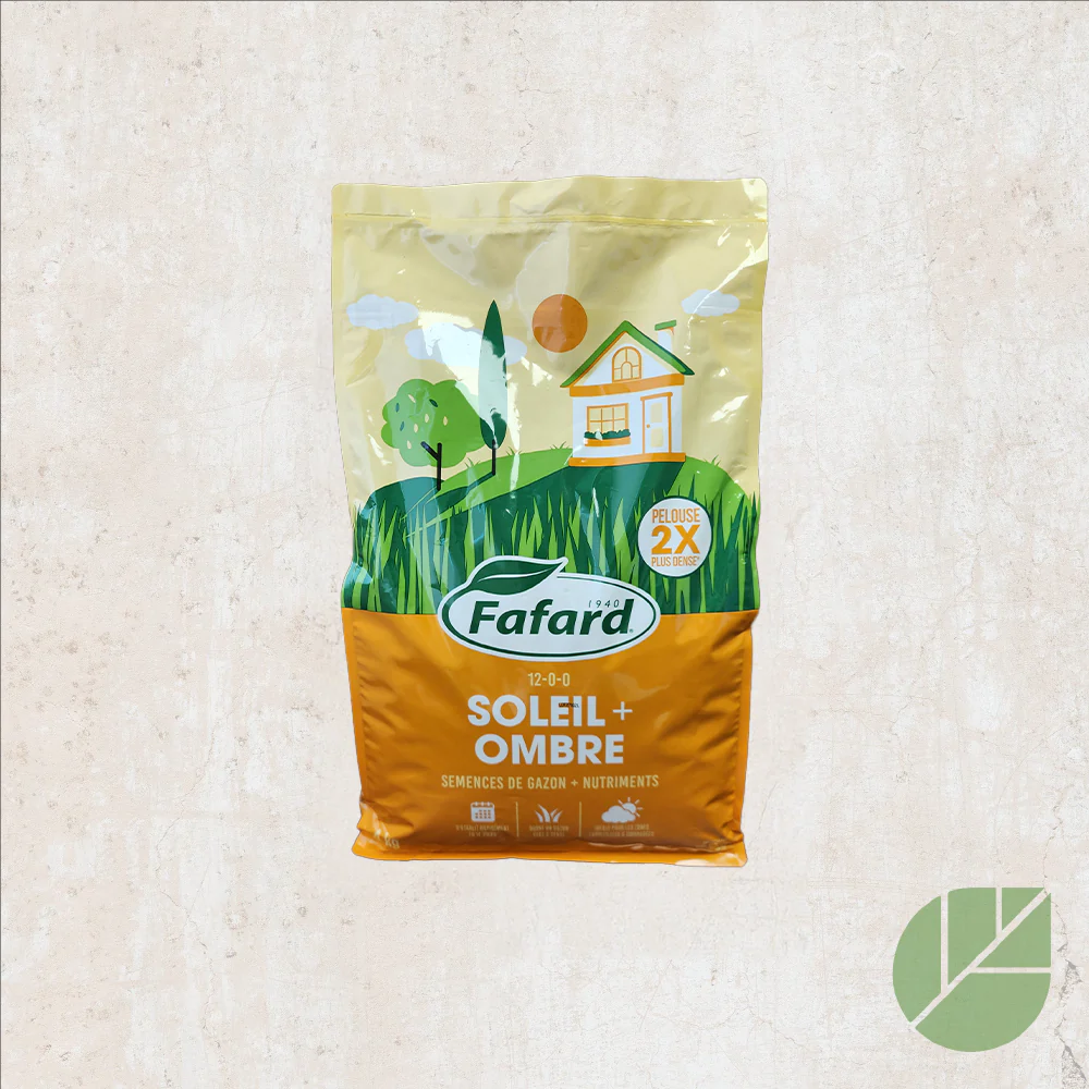 Le mélange de semences à gazon Soleil + Ombre Fafard est conçu pour établir une pelouse dense et uniforme dans des conditions de lumière variables. Cette combinaison de graminées sélectionnées permet une implantation fiable autant dans les zones fortement ensoleillées que dans les secteurs partiellement ou totalement ombragés du terrain.